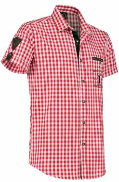 Overig Trachtenhemd Blauw/Wit Korte Mouw Met Hertjes (100% Katoen)