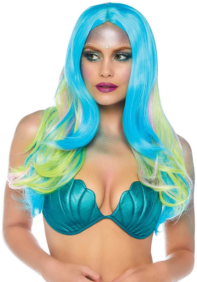 Een vrolijke en kleurrijke lange pruik met ombre effect voor als je verkleed gaat als bijvoorbeeld een zeemeermin! Het is een mooie kwaliteitspruik van Leg Avenue.