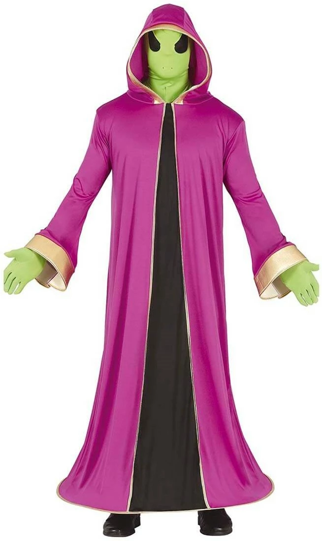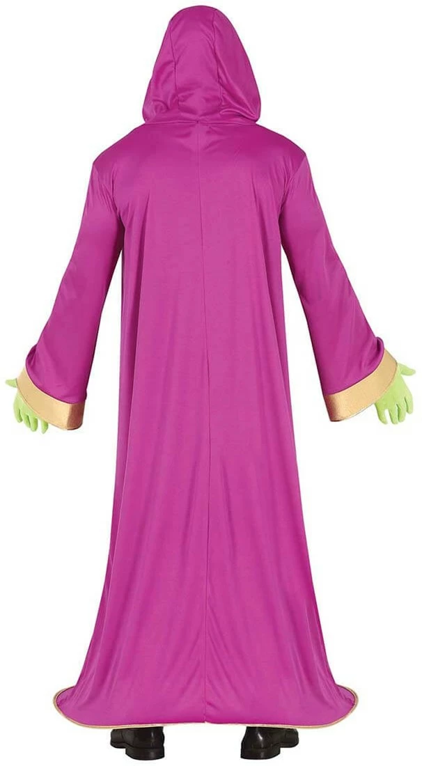 Details jurk: lange mouwen, capuchon en onderin de zoom van de jurk zit een hoepel