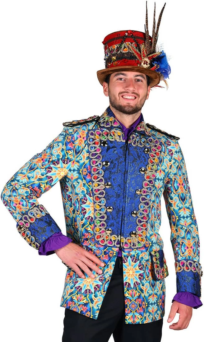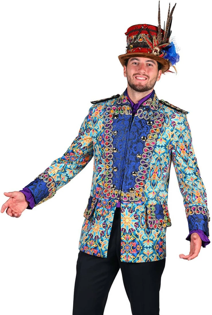 Details: afgewerkt met zilverkleurig band, sierknopen en epauletten