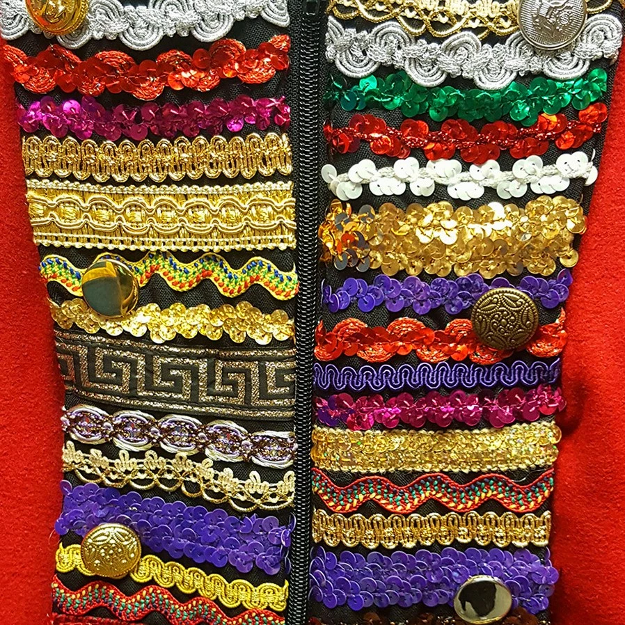 Op zoek naar een nieuwe en unieke carnavalsjas? Deze carnavalsjas Ribbon Chaos is van hoogwaardige kwaliteit en allermeest uniek! De patronen op de kraag, borst, schouders, mouwen en zakken zijn bij elke jas anders! Er is geen enkele jas die precies hetzelfde patroon heeft. Verder is de jas voorzien van stroken in verschillende patronen aan de voor- en achterkant. De wollen carnavalsjas heeft ook allemaal verschillende knopen en is de jas gemaakt van 100% katoen. Met andere woorden: een jas waar er maar 1 van is!