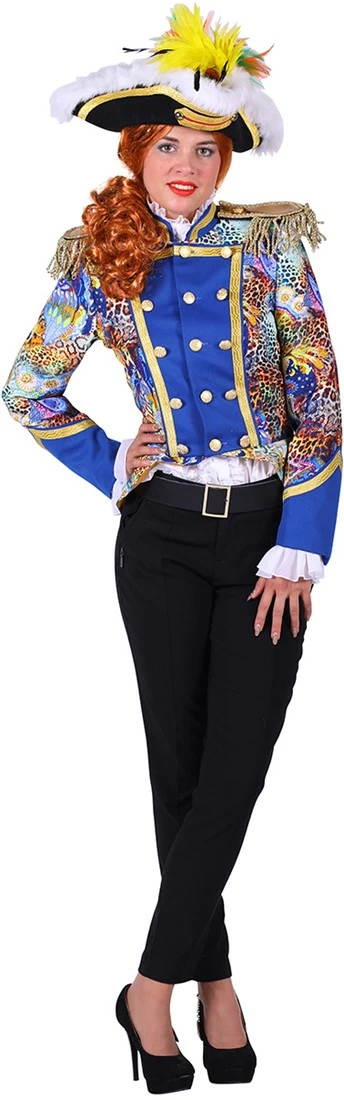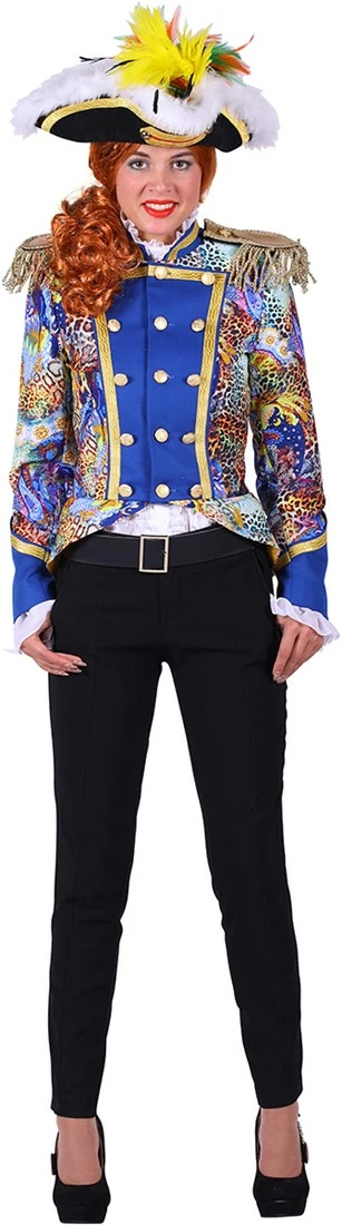 Deze mooie carnavalsjas heeft een kleurrijke print. De damesjas is dan ook door z’n sierlijke look perfect om aan te trekken naar de carnaval!