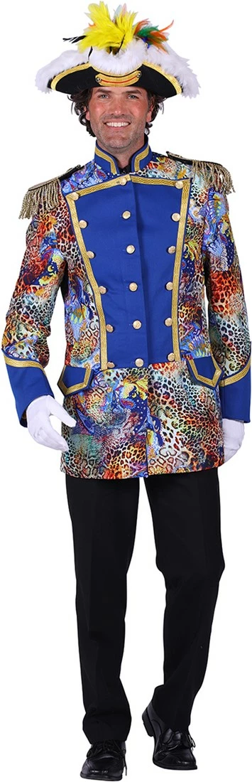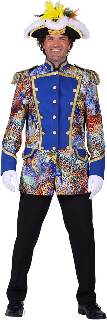 Een sierlijke carnavalsjas met een beestachtige print. Deze jas voor heren is dan ook perfect om aan te trekken naar de carnaval!