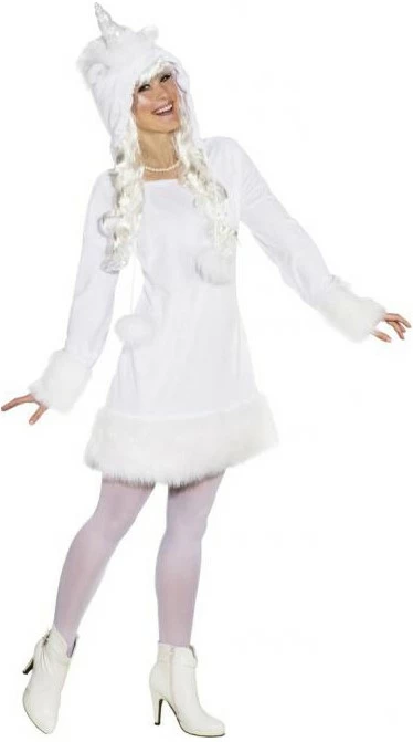 Dit Eenhoorn jurkje is een sexy carnavalsjurkje voor swingende dames en meiden die van dieren houden. Met de capuchon die eraan vastzit en het zachte stof wordt jij een sexy Eenhoorn!