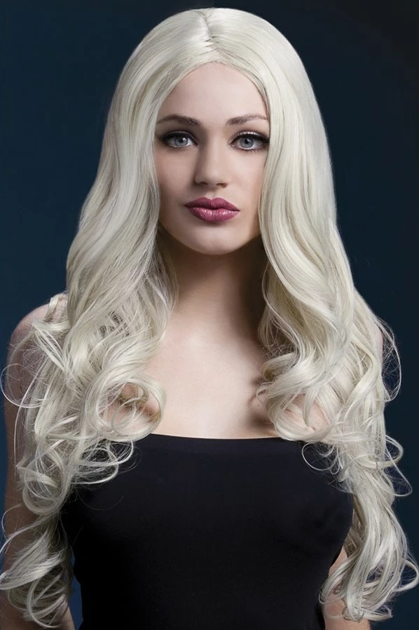 Een erg mooie blonde pruik met laagjes en krullen van 66 centimeter. De pruik is in meerdere kleuren verkrijgbaar. Deze prachtige pruik maakt deel uit van de Fever Wig Collection. Dit is een collectie met kwalitatieve en realistische pruiken.