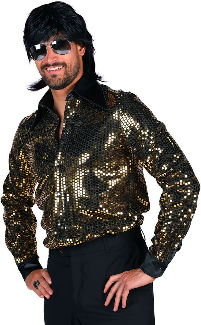 Details: vierkante pailletten en de kraag en manchetten zijn effen zwart