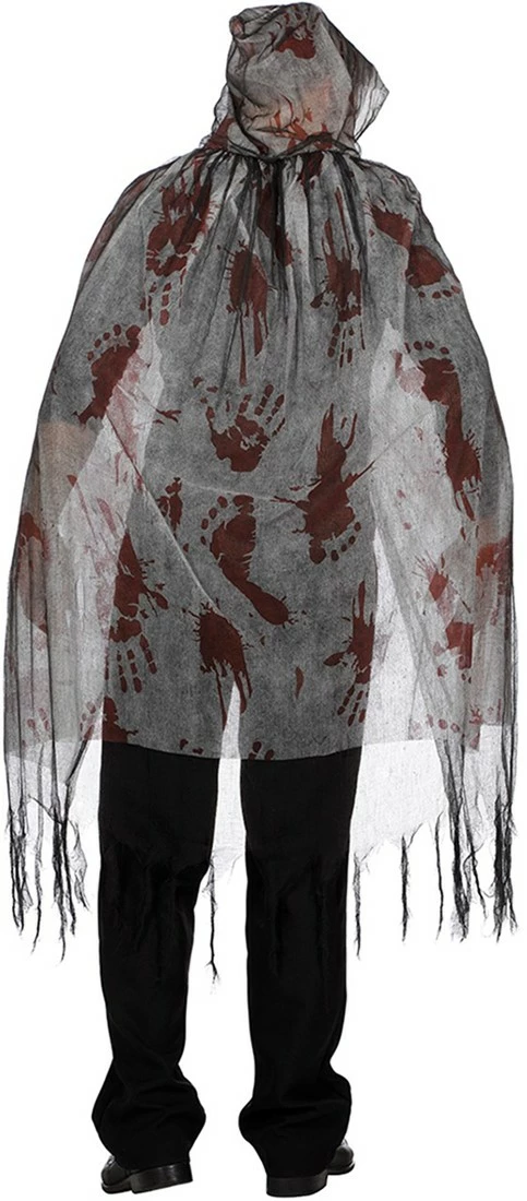 Een gruwelijke cape met een verweerde look en allemaal bloedvlekken! De cape is perfect om snel klaar te zijn voor Halloween.