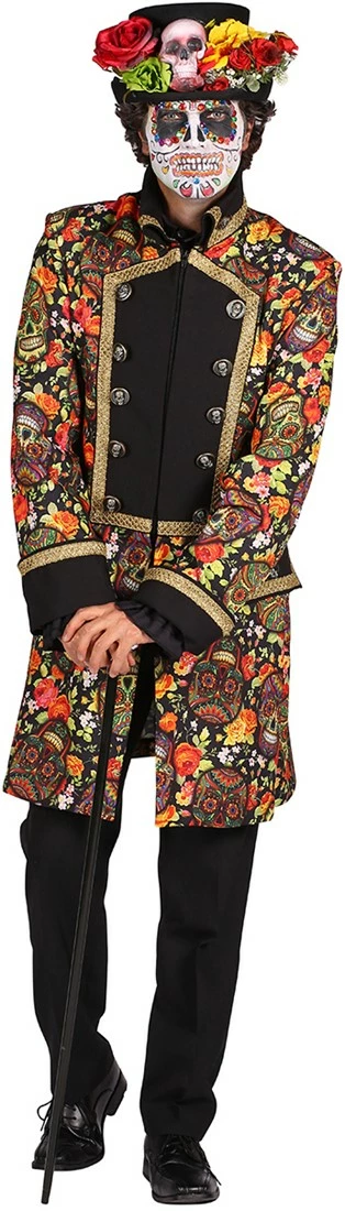 Kleurrijke heren jas met een opdruk van Mexican Skulls – Day of the Dead. De jas sluit aan de voorzijde doormiddel van een rits. Ook verkrijgbaar in een zwart/wit variant. De jas is gemaakt van 100% polyester.