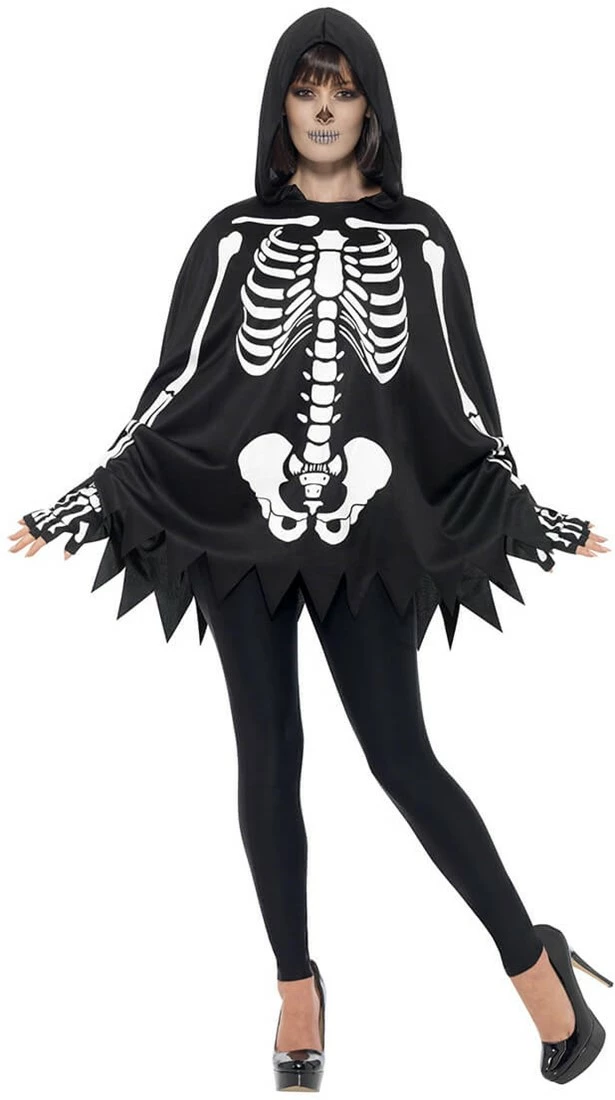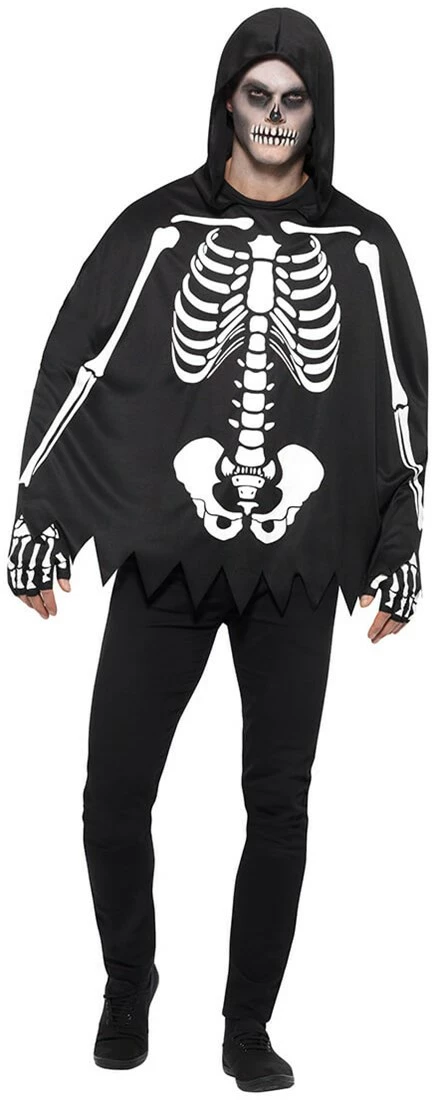 Ga verkleed als een skelet met deze gave poncho tijdens Halloween of een ander eng feest!