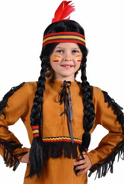 Pruik Indiaan Kids, een mooie indianen pruik geschikt voor kinderen. De pruik heeft twee staartjes waar een mooie vlecht in gemaakt is. Tevens verkrijgbaar in een volwassen versie.