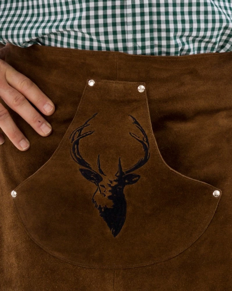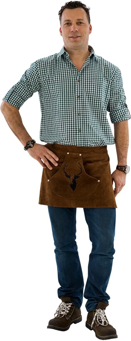 Bij een Oktoberfest denkt bijna iedere man natuurlijk direct aan een lederhose, maar ook met dit authentieke schort ben jij gekleed voor ein gutes Party en zelfs voor achter de tap. Het schort is voorzien van een fijn geborduurd hert op de voorkant van een steekzak. Het schort is one size, maar door de touwen aan de zijkanten (ieder 130cm lang) is het voor iedere maat te gebruiken.