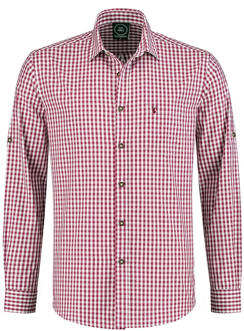 Een kwalitatieve geblokt trachtenhemd voor heren in het wijnrood/wit. Perfect voor ieder Oktoberfest.